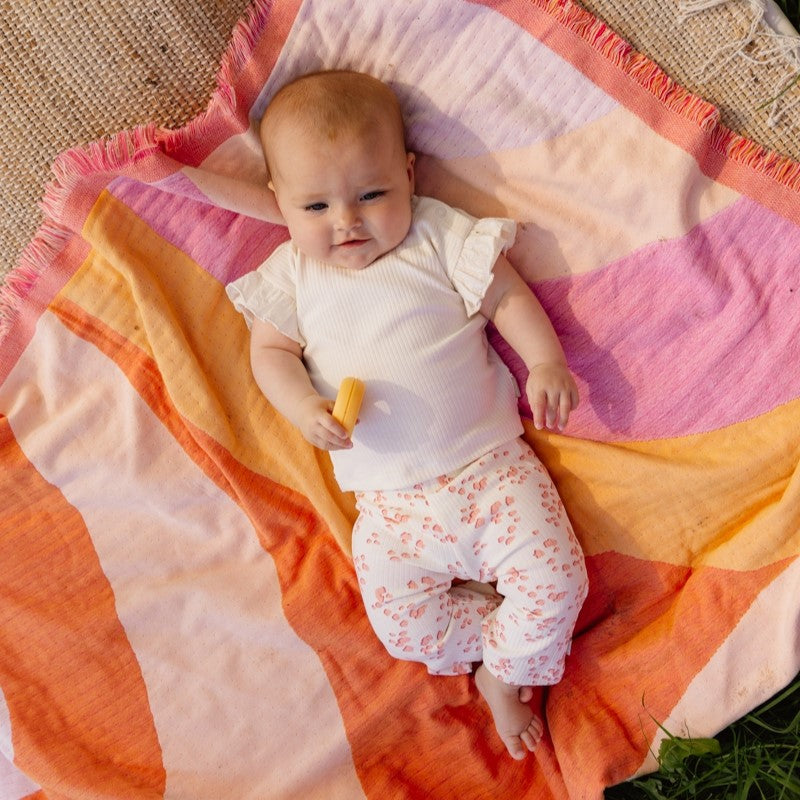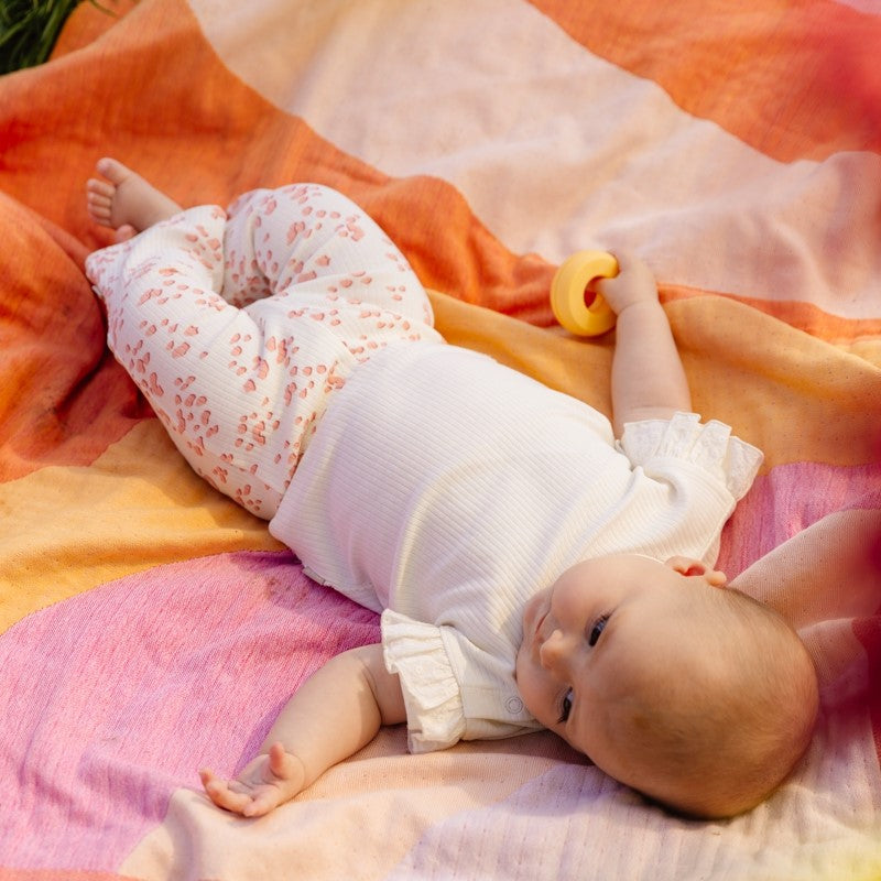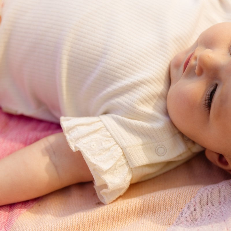 Een lief gebroken wit T-shirtje voor meisjes met prachtige ruffel mouwtjes. Een Fijne basic voor in de babygarderobe. Combineer het bijvoorbeeld met ons broekje gebroken wit of onze tuinpak oatmeal voor een geweldige zomer babyoutfit. Het truitje beschikt over drukknoopjes op de linker schouder om het aan en uit trekken gemakkelijk te maken.