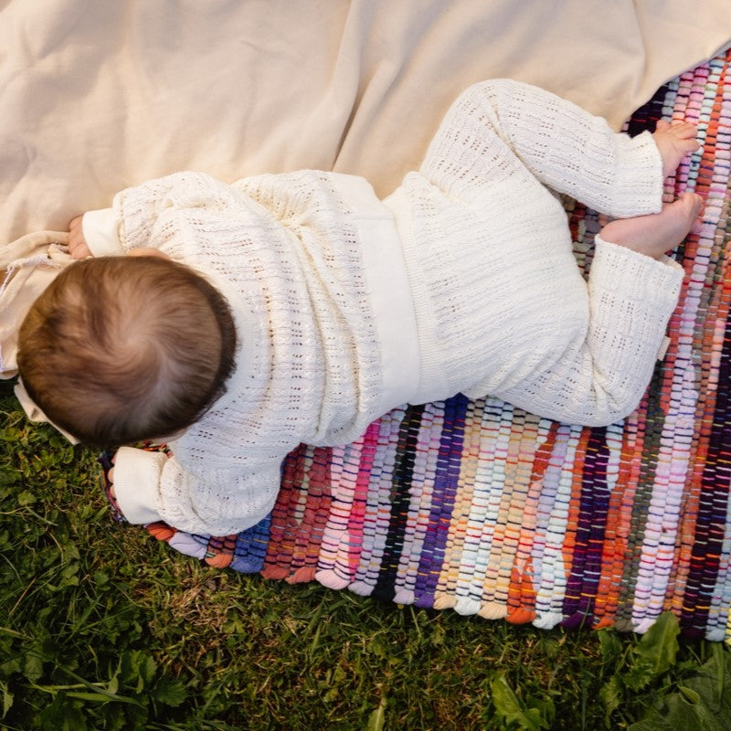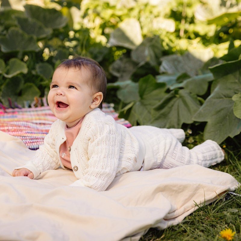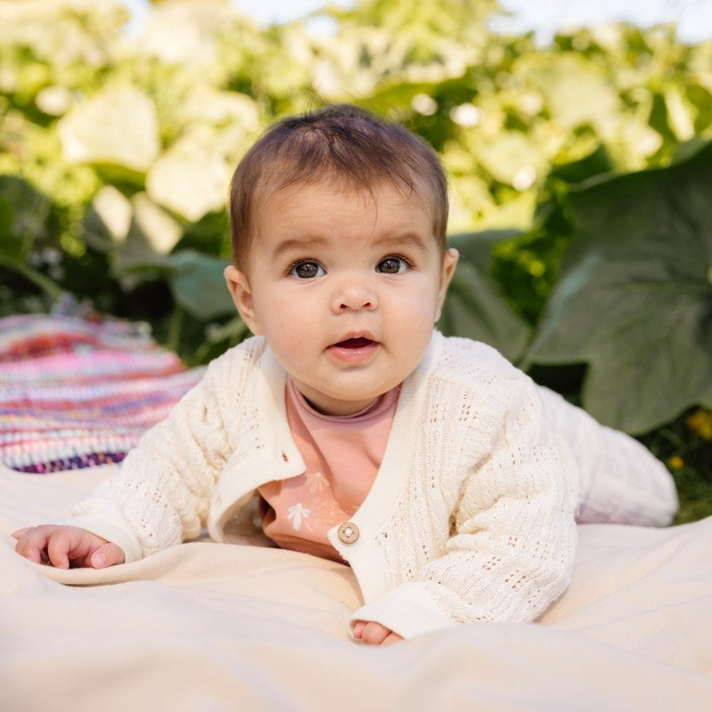 Een perfect vestje voor baby's tijdens de zomer. Door het gehaakte motiefje is het vestje lekker luchtig. Het vestje is in de kleur gebroken wit en heeft houten knoopjes als accent. Door de kleur past het vestje bij elke baby-outfit. Of combineer het vestje met het bijpassende broekje gebroken wit voor de totale outfit.
